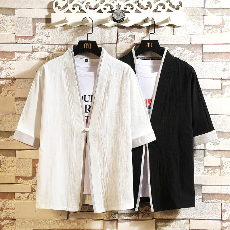 2024中国風綿麻メンズ2点セット民族風服カジュアル唐服レトロ漢服道着男