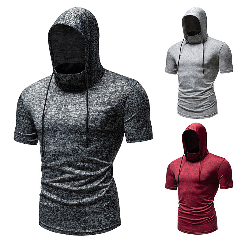 国境を越えた2024夏アマゾン男性の新型ヨーロッパコードファッションフィットネスランニングフード付き半袖tシャツ男性