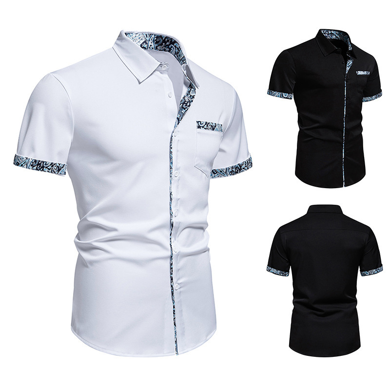 国境を越えたアマゾン夏の新型シャツ男性ユーロコード三角襟腰果の色合わせカジュアル男性半袖シャツ