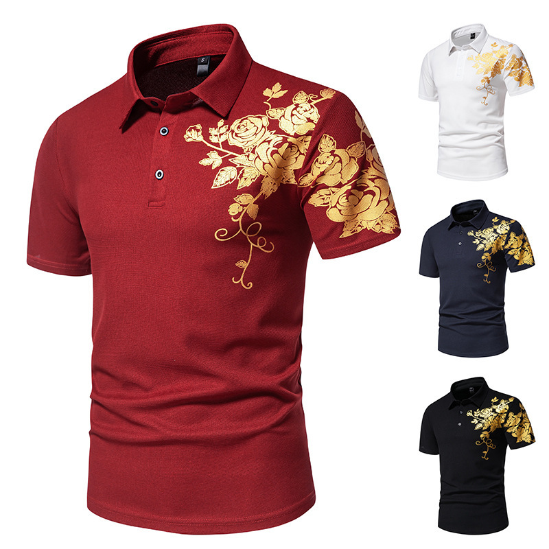 夏の新型国境を越えたアマゾンのユーロコード薔薇箔押しプリント襟半袖tシャツ男性poloシャツ卸売り