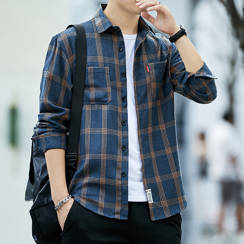 2023長袖日系シャツ男性春秋新作上着韓国版ファッションカジュアル格子シャツ男性卸売り