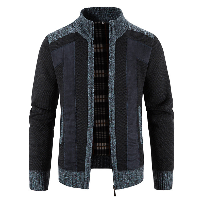 2023年秋冬新作ベルベット厚手大サイズ対外貿易男性セーター立襟カーディガンセーター修身コート男