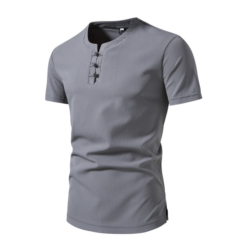 クロスボーダー2023夏の新型男性レトロ盤口レトロ立襟シャツ半袖純色カジュアルシャツ卸売り