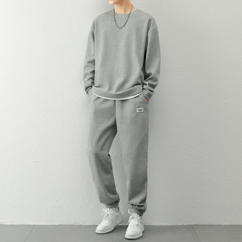 クロスボーダー2023春新作メンズカジュアルスーツワッフル長袖パーカー長ズボン青年スポーツスーツ