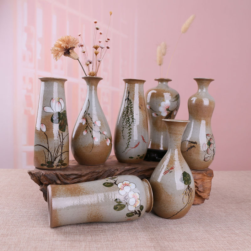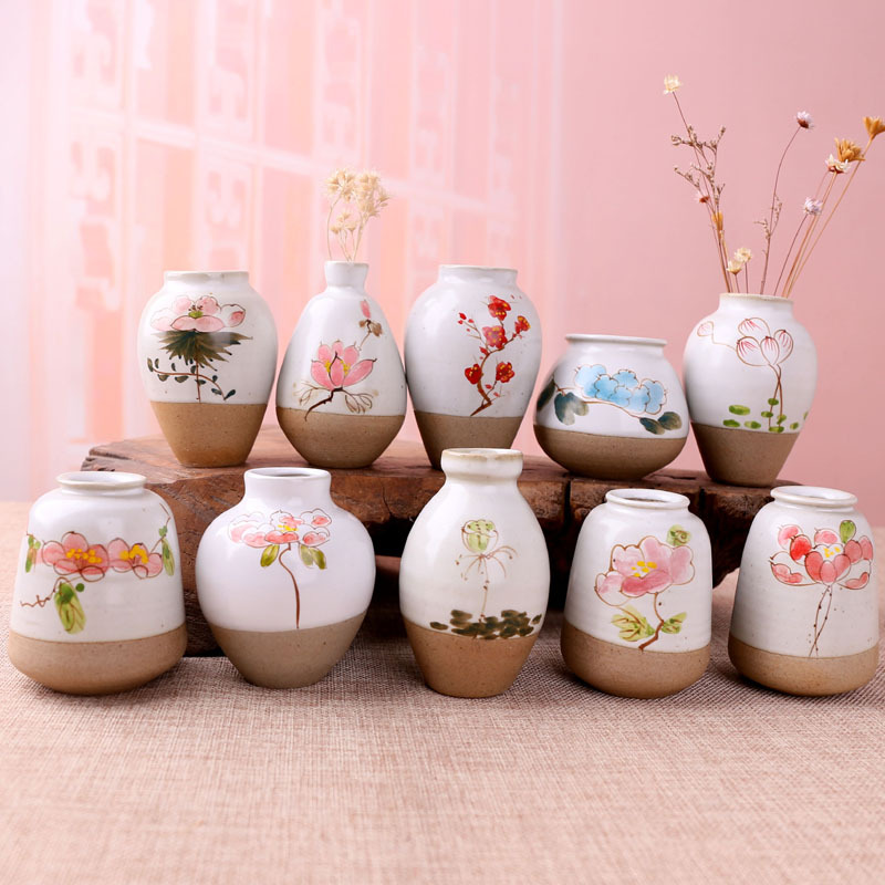 花瓶田園風手描き粗陶小花瓶乾花緑植花瓶置物テーブルトップ小置物