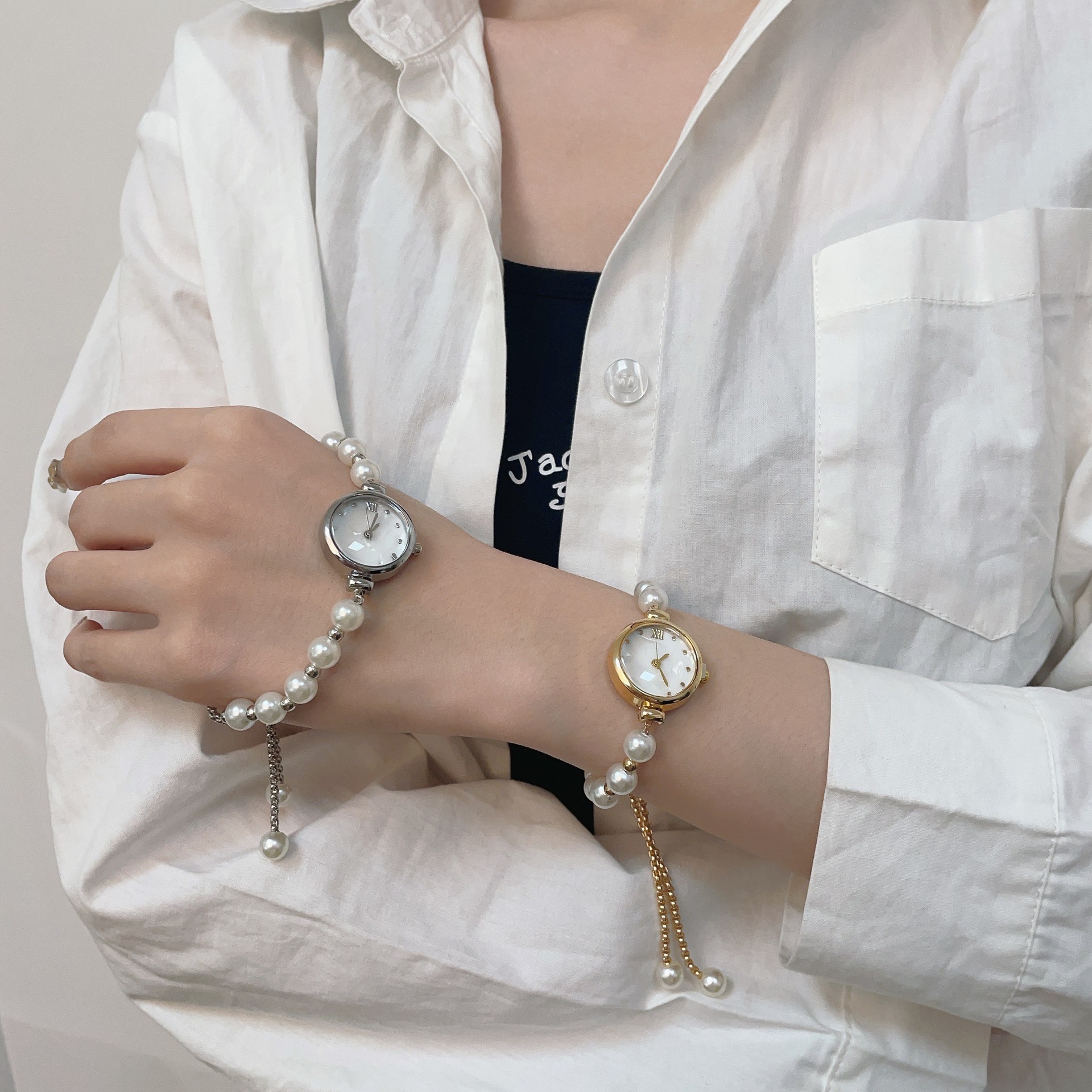 クロスボーダー新しいパールブレスレットレディースクォーツ時計ニッチライト高級スモールダイヤルプルアウト調節可能な時計ホットスタイル