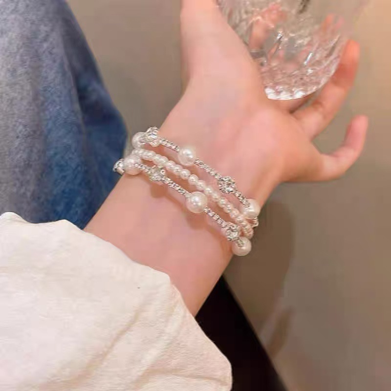 女性用の輝くダイヤモンド多層パールブレスレット、軽い高級感、ニッチ、ハイエンド、絶妙な気質ブレスレット、パーソナライズされたファッショナブルなブレスレット