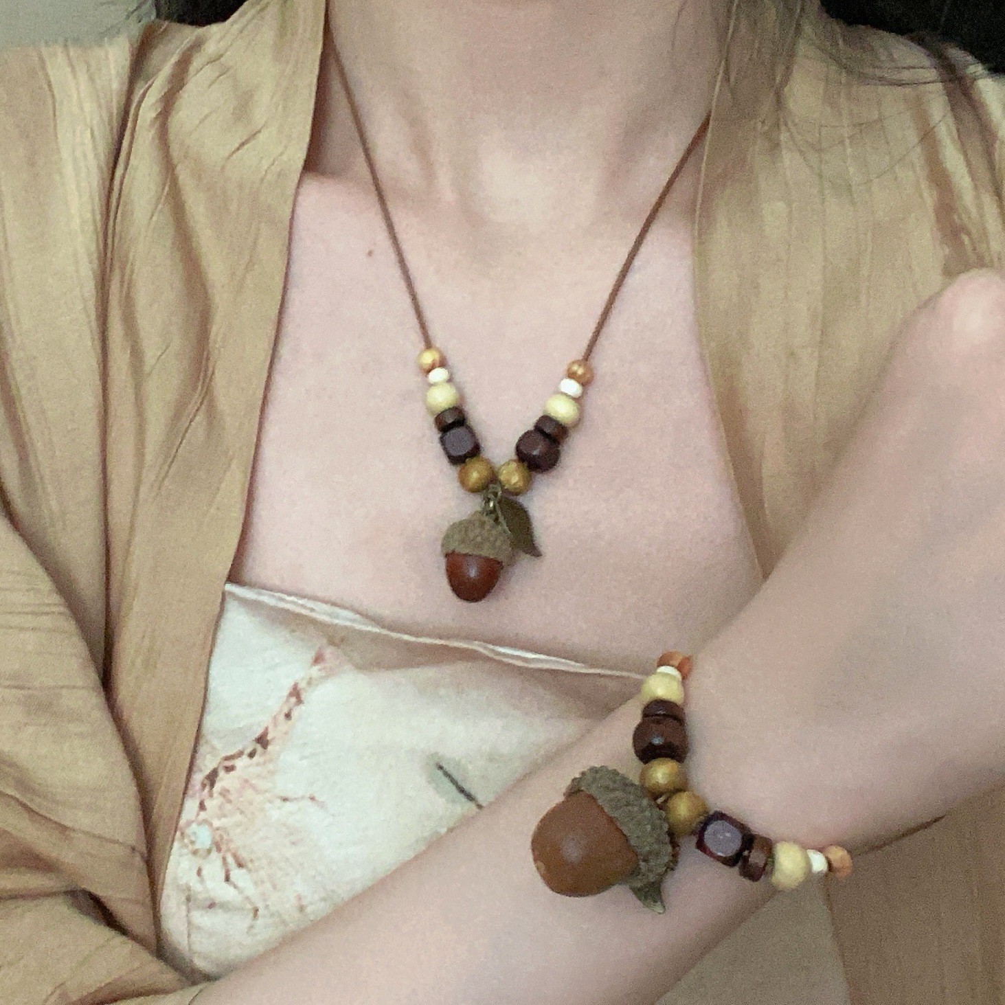 レトロなデザインの松ぼっくりペンダントブレスレット、森の手織りのシンプルで多用途なパーソナライズされた鎖骨チェーンブレスレットアクセサリー