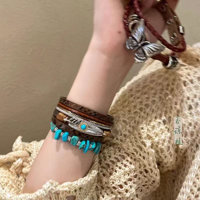 新しい中国風の多層フェザーブレスレットエスニックスタイルレトロパーソナライズブレスレットメイラードハイエンドパーソナライズブレスレット