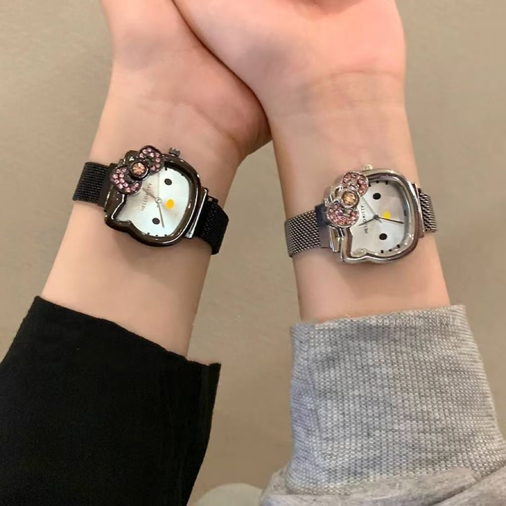 中古ハローキティダイヤモンド付きブレスレット、軽やかな高級感、キュートな漫画風猫クォーツ腕時計、女性用アクセサリー