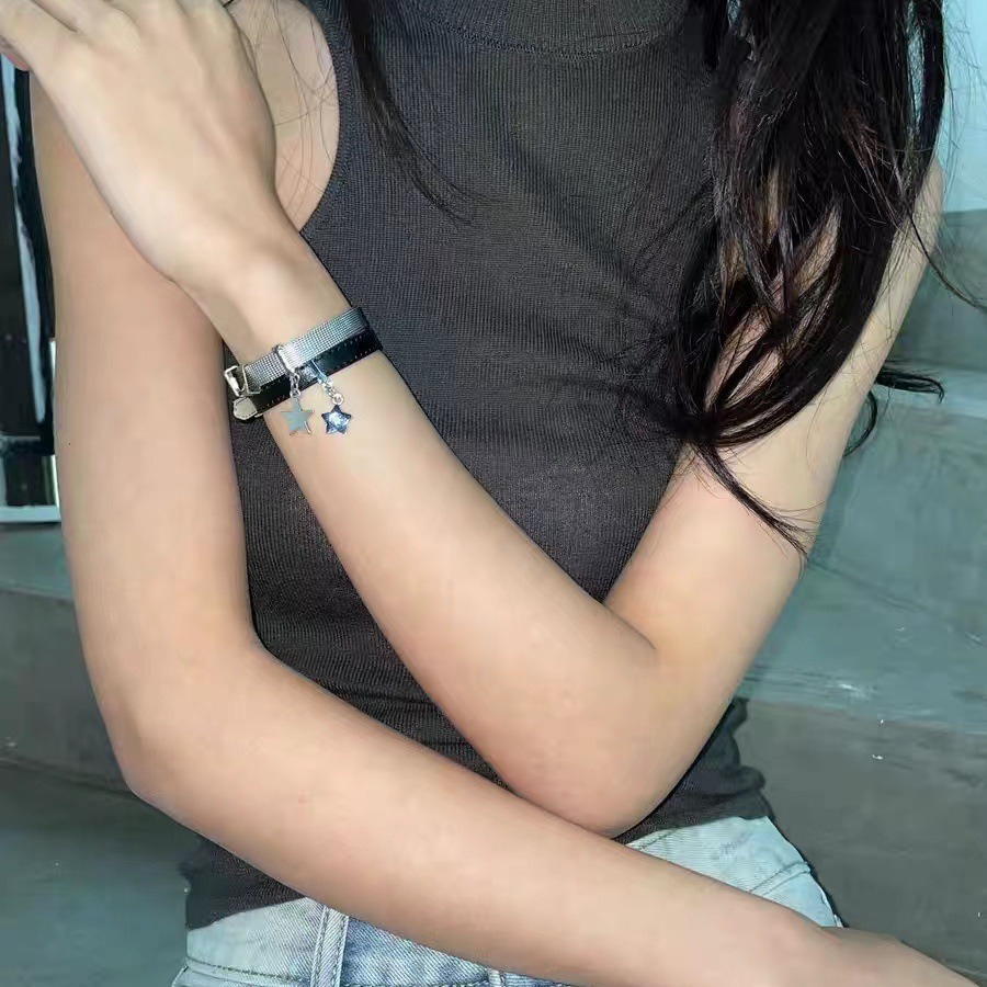 ニッチデザイン甘くてクールなホットガール y2k スターペンダントブレスレット調節可能なスタッカブルブレスレットミレニアムスタイルチタン鋼ブレスレット
