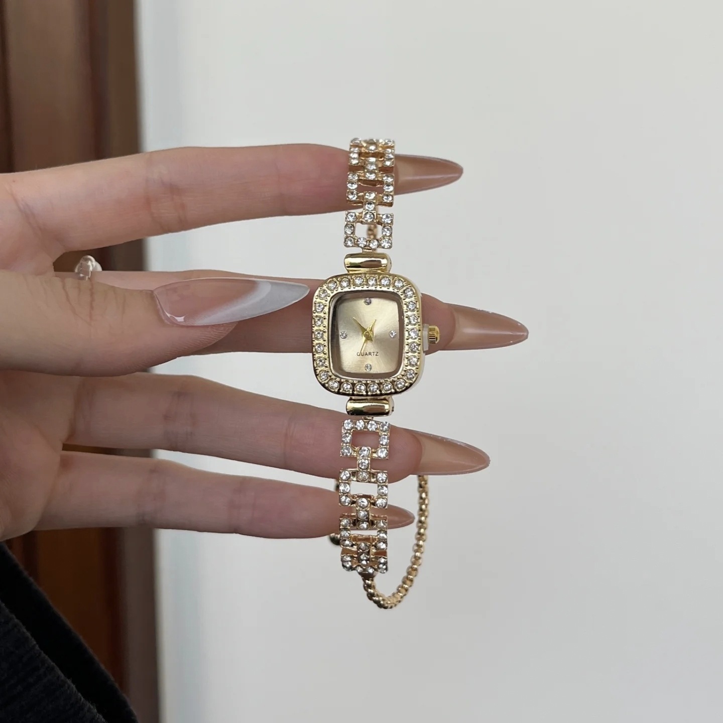 クロスボーダーの新しいスクエアダイヤル、ダイヤモンドがちりばめられたプルアウトブレスレット、軽い高級感、ハイエンドのファッション、絶妙なアクセサリー、ハンドアクセサリー