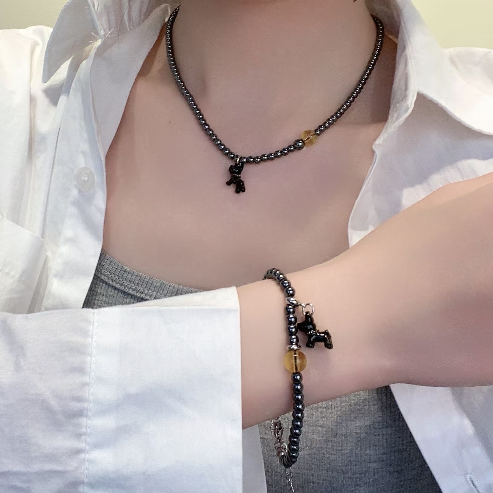ニッチデザインのブラックパピービーズブレスレット、ニッチデザイン、ハイエンド、パーソナライズされたファッション、シンプルで多用途な鎖骨チェーン