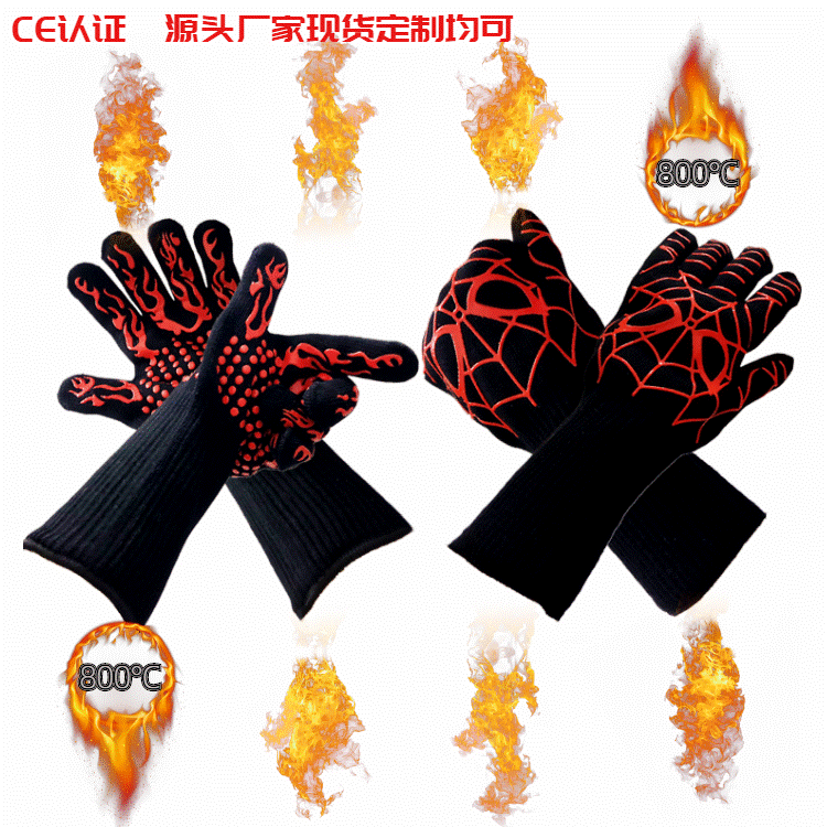 2022耐高温バーベキュー手袋アマゾンオーブン焼きBBQ500-800度耐熱難燃防傷