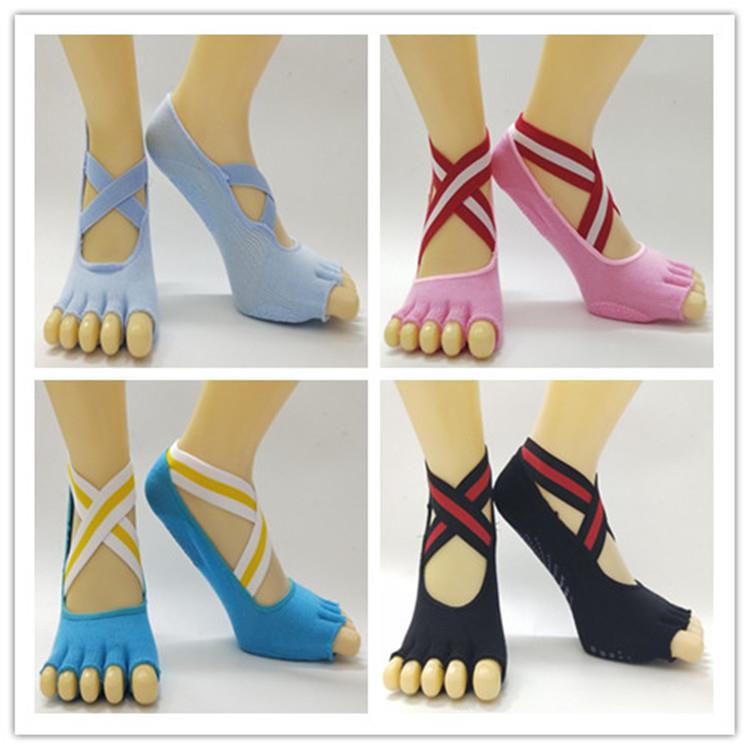 2022ストラップクロスポイントシリコンスポーツヨガソックス滑り止め耐摩耗性ヨガソックス五指通気性体操ソックス