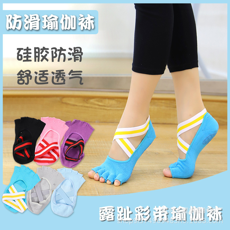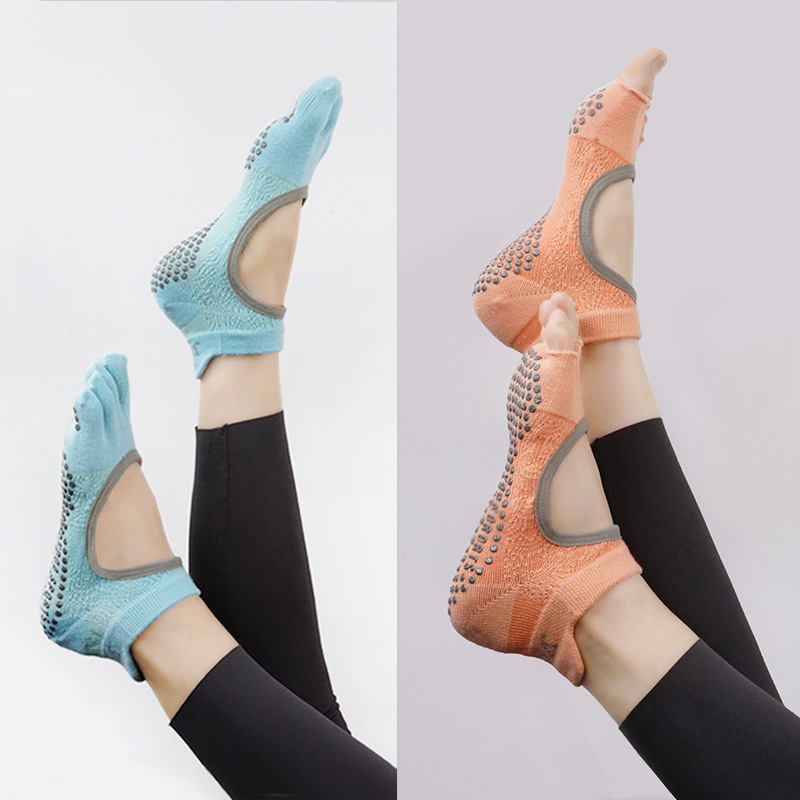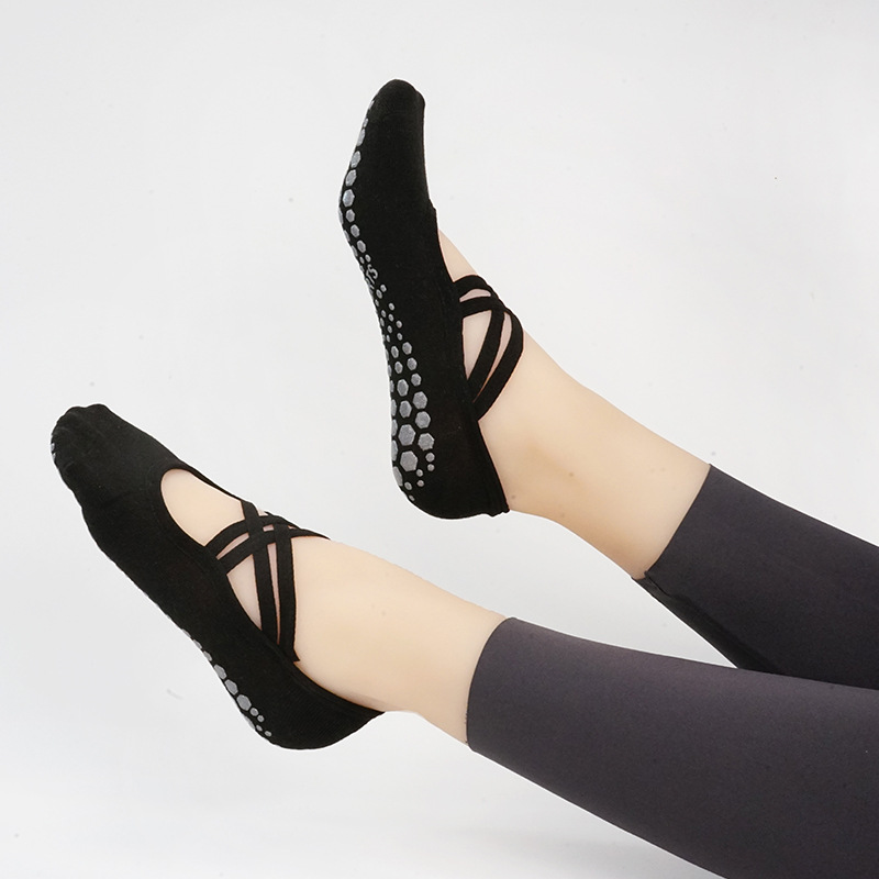 クロスストラップ背中出し滑り止めポイントヨガソックスレディースプラティダンスフィットネススポーツソックスフロアソックス
