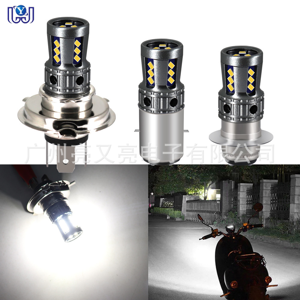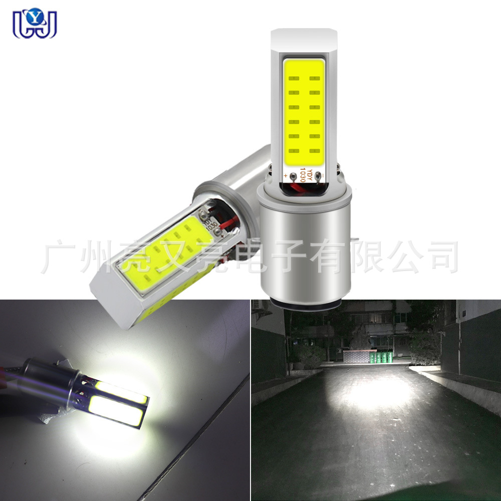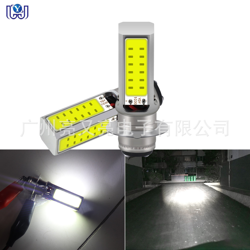 オートバイledヘッドライトpa15 cob四面遠近光三爪電気自動車前照灯内蔵電球