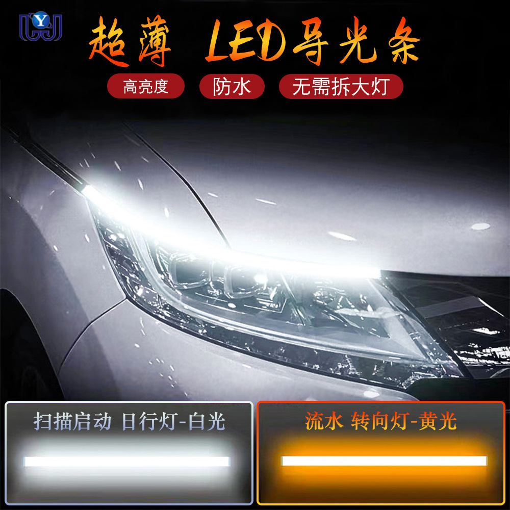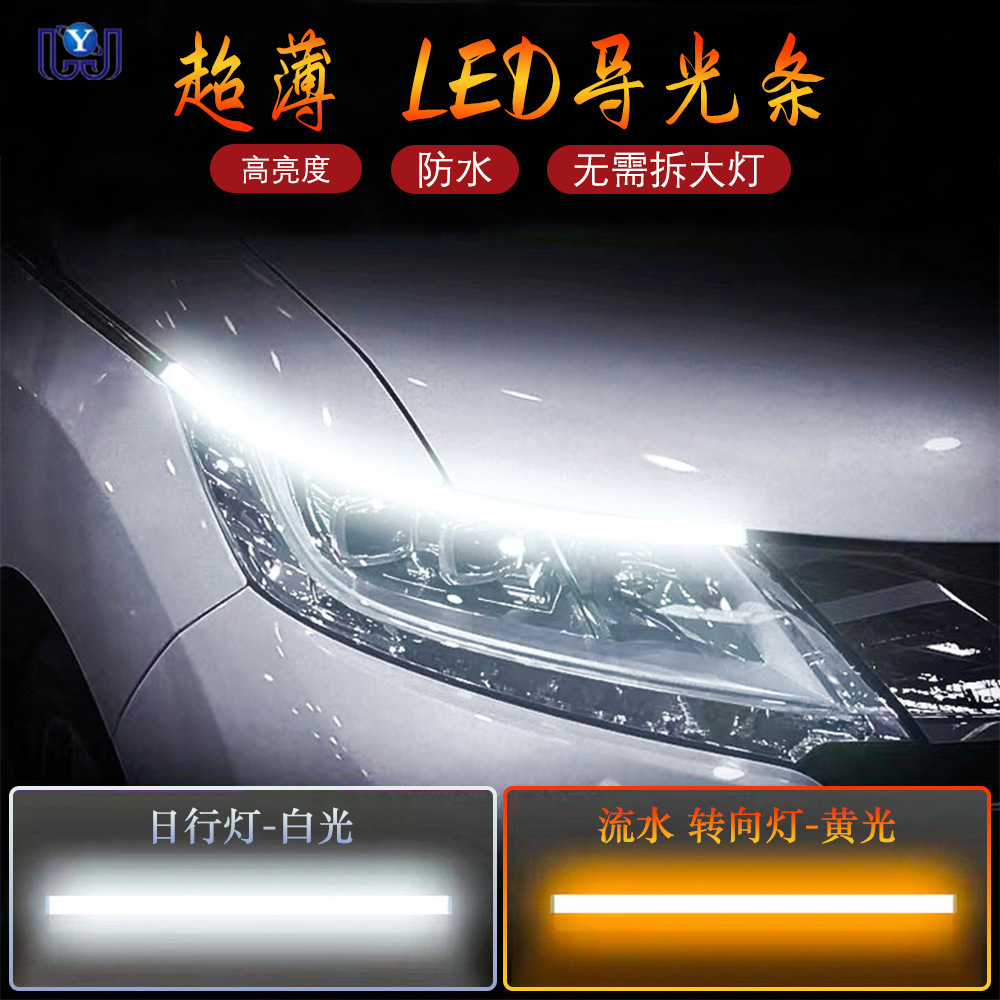 自動車led導光バー超薄型日ランプ2色流水ベルト回転ランプ涙目ランプヘッドライト装飾ランプバー