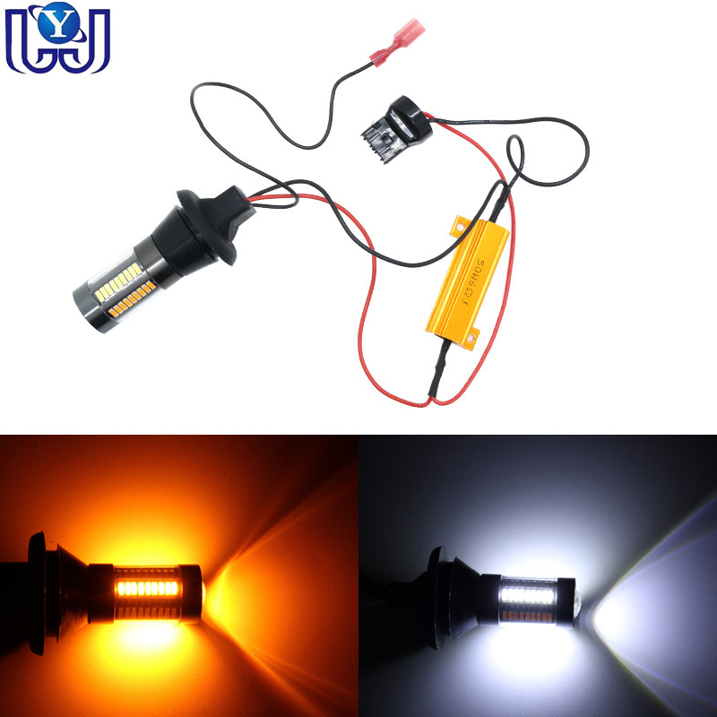 改装ledブロードライト2色走行灯4014 66smd白色プラス黄色ウインカーライト