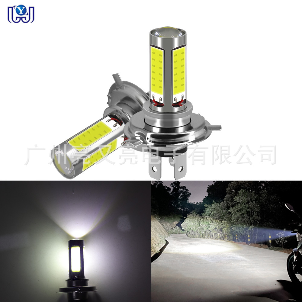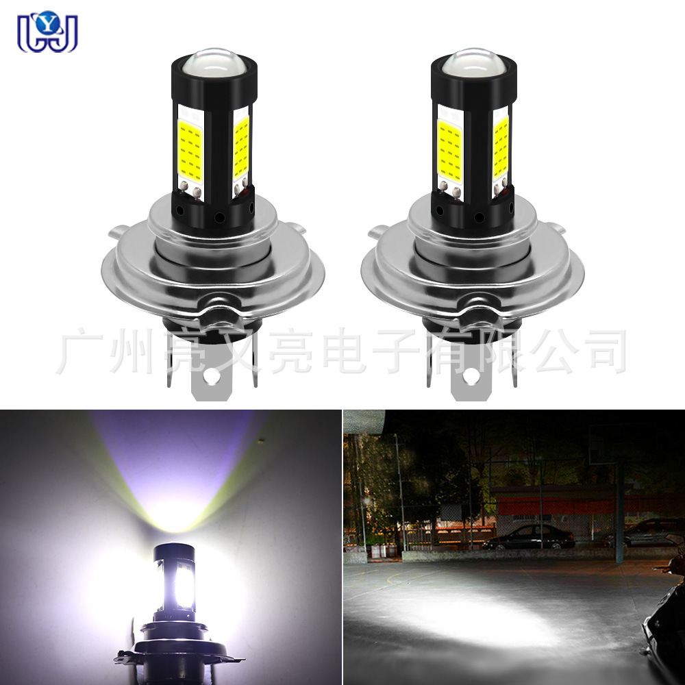 オートバイledヘッドライトh4三爪cob四面照明オートバイ電気自動車遠近光前照灯