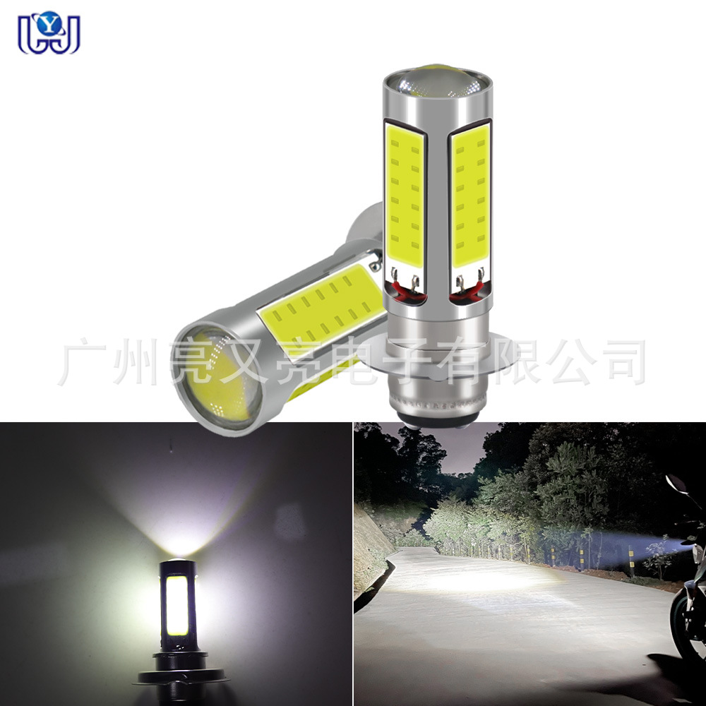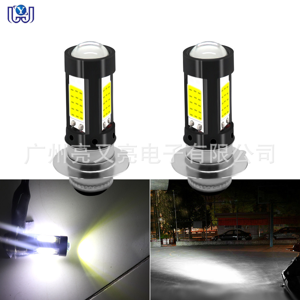 オートバイledヘッドライトpa15 cob 3面発光電気自動車前照灯レンズ付き高光遠近光灯