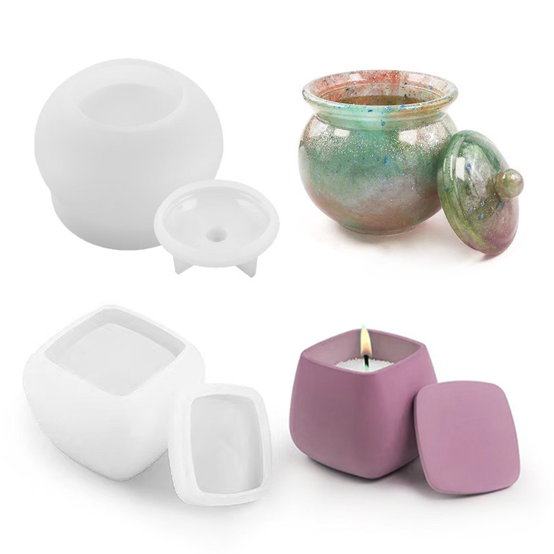 Diy樹脂石膏セメント角形大腹カップ金型円形つぼ収納缶キャンドルカップシリコン金型