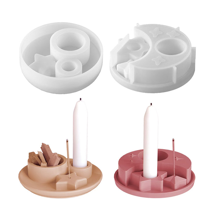 DIY 接着剤石膏型ラウンドスタームーンキャンドルキャンドルベースアロマキャンドルホルダー装飾品シリコーン型