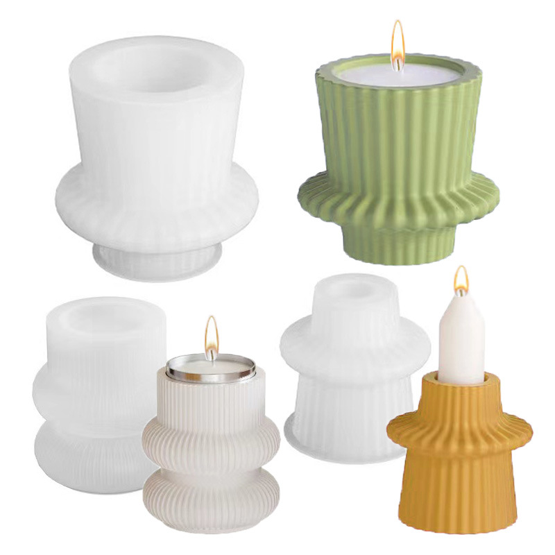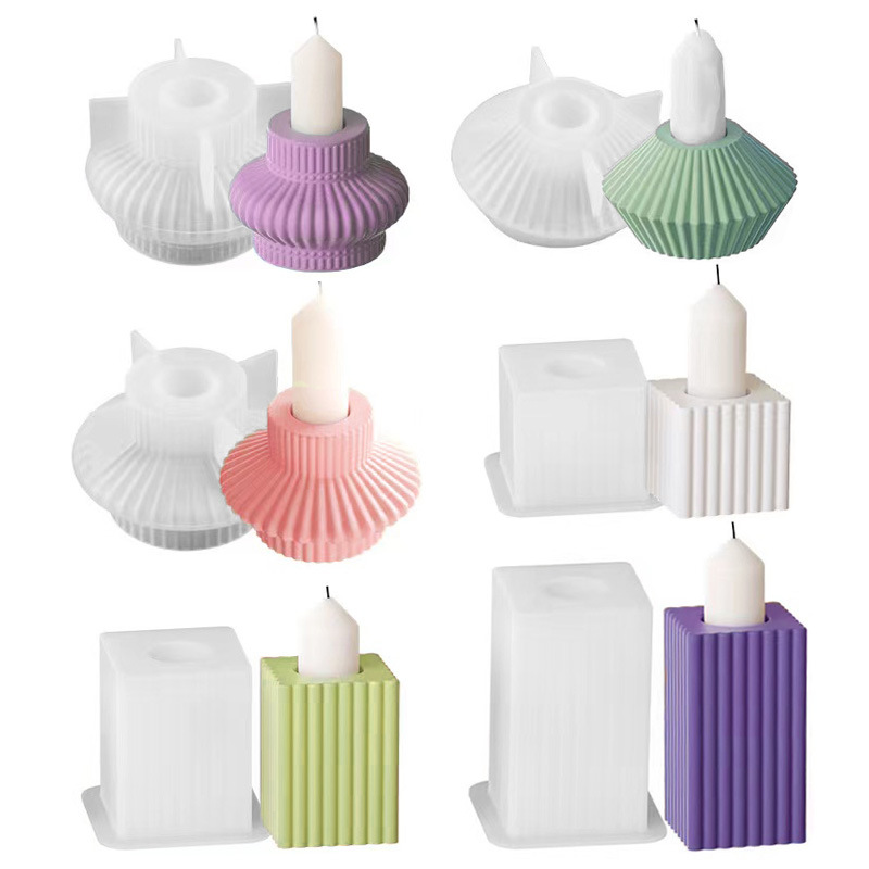 DIY滴ゴム樹脂幾何学的縞ろうそくの台座に石膏香薫ろうそくカップろうそく台シリコン金型を置く