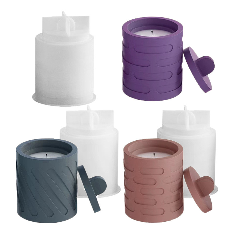 Diy水晶滴ゴム円形ストライプ収納缶金型石膏円柱蓋付き容器キャンドルカップシリコン金型