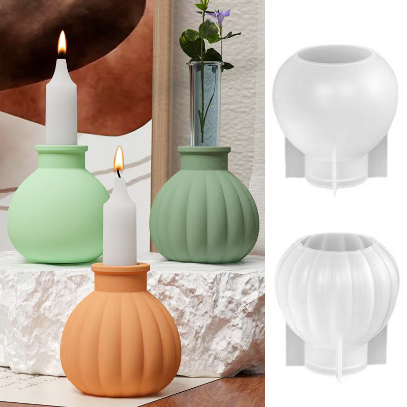 Diy石膏カボチャ花瓶花器燭台金型光沢面円形縞挿し花瓶ろうそく底シリコン金型