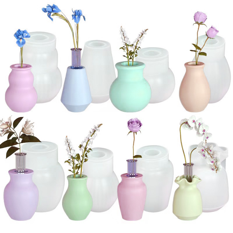 Diy水晶滴ゴム円形花瓶金型石膏セメントレース丸口瓶ろうそく台シリコン金型