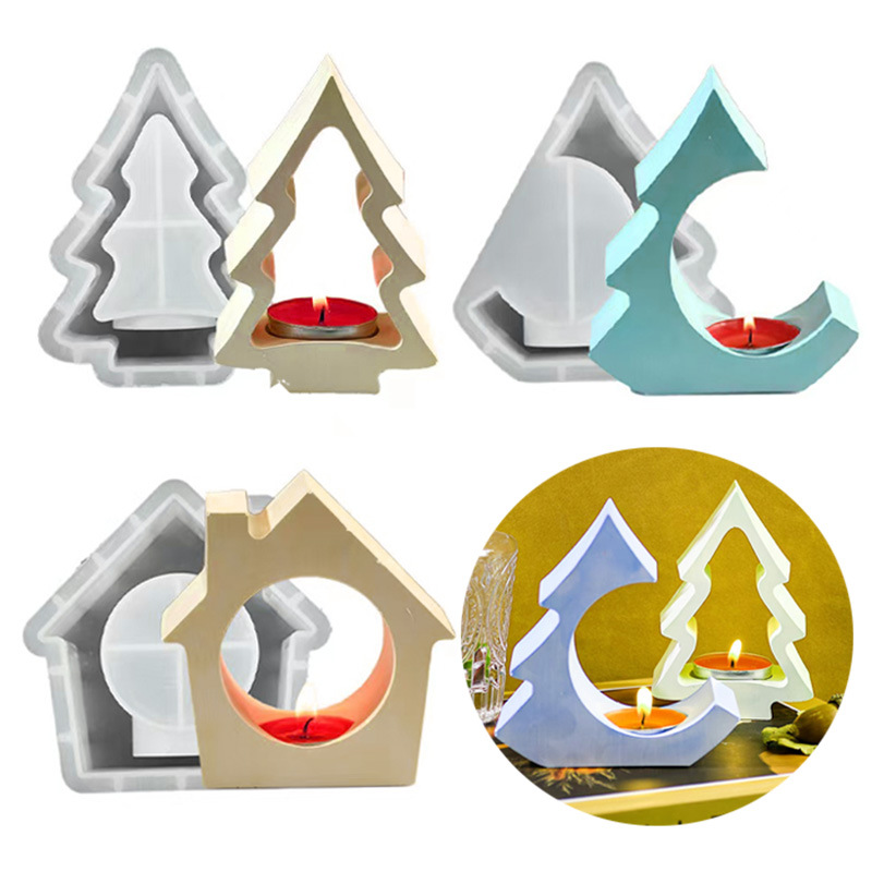 Diy滴ゴムクリスマスツリー小屋燭台金型クリスマスシリーズ香薫燭台ろうそくベースシリコン金型