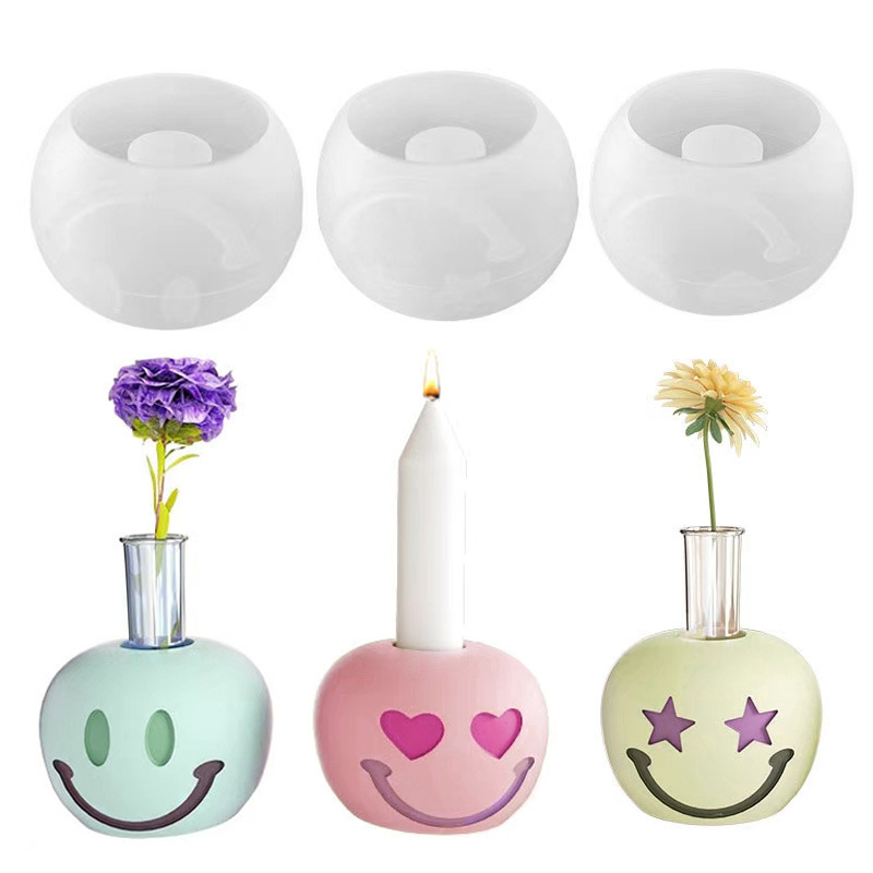 DIY滴ゴム笑顔燭台石膏金型円形愛星笑顔生け花器ろうそく台シリコン金型