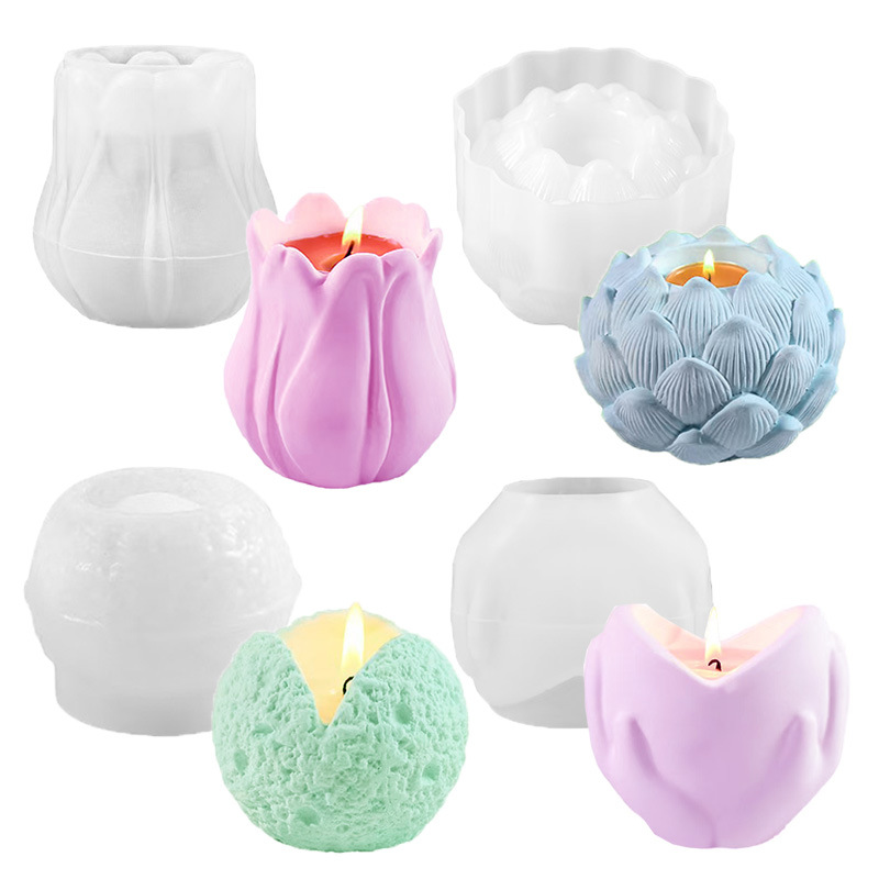 Diyドリップチューリップ花クラウン蓮つぼみ燭台金型隕石球状石膏キャンドルカップシリコン金型