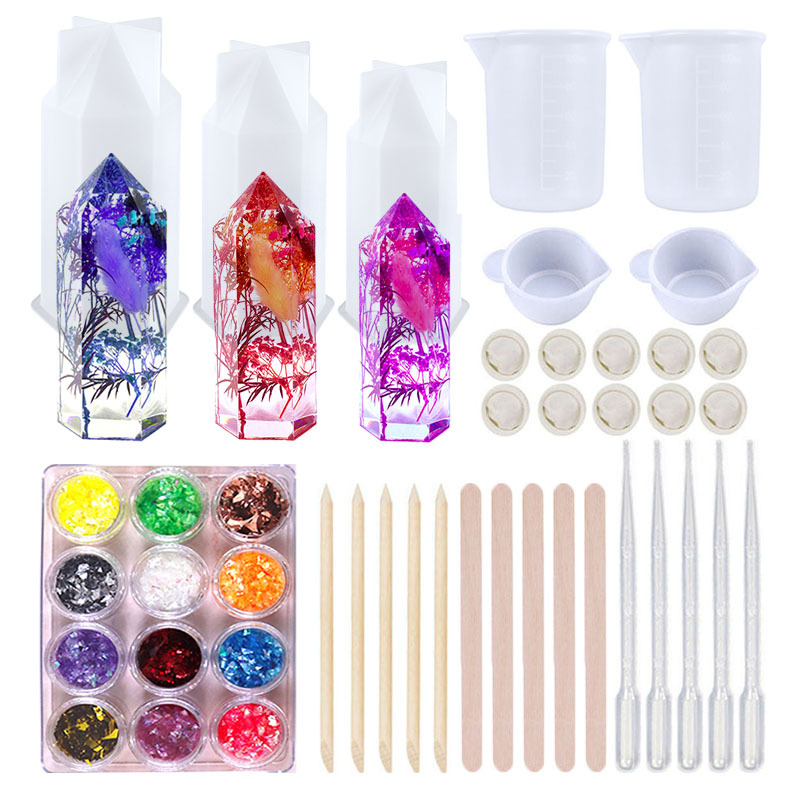 バタフライダンスdiyクリスタルドリップ樹脂六角ボトル研磨器皿セットシリコン金型アマゾン