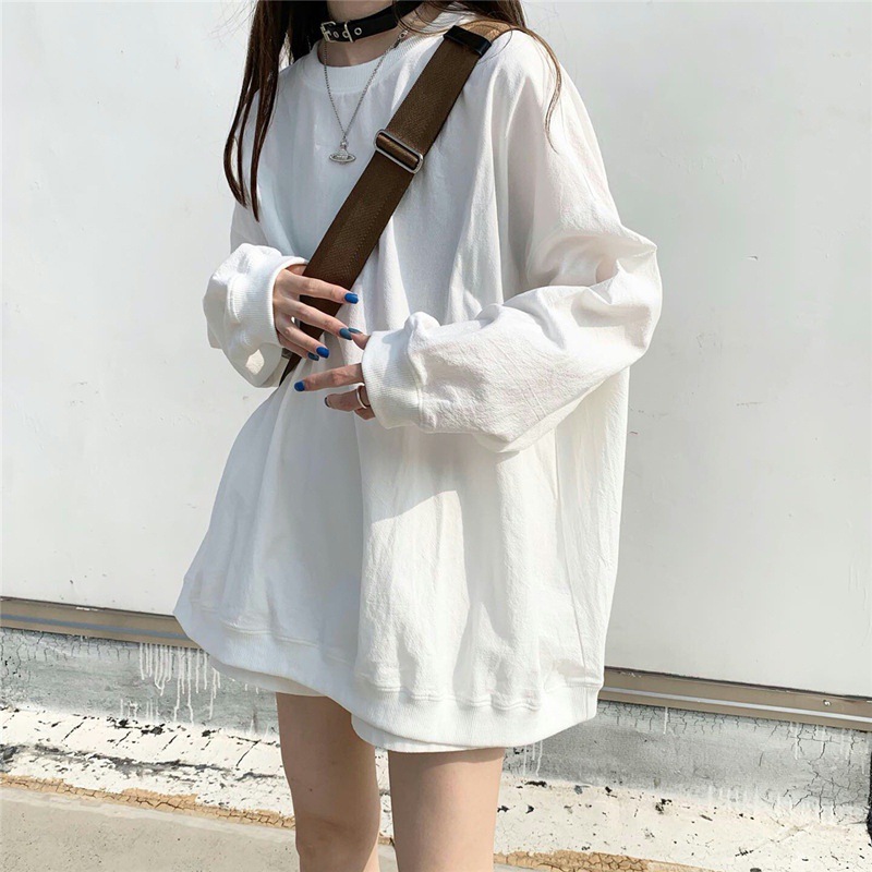 2025年秋新作 韓国風 ゆったり 大きめサイズ 無地 薄手 長袖 スウェットシャツ レディース 学生服 女性用