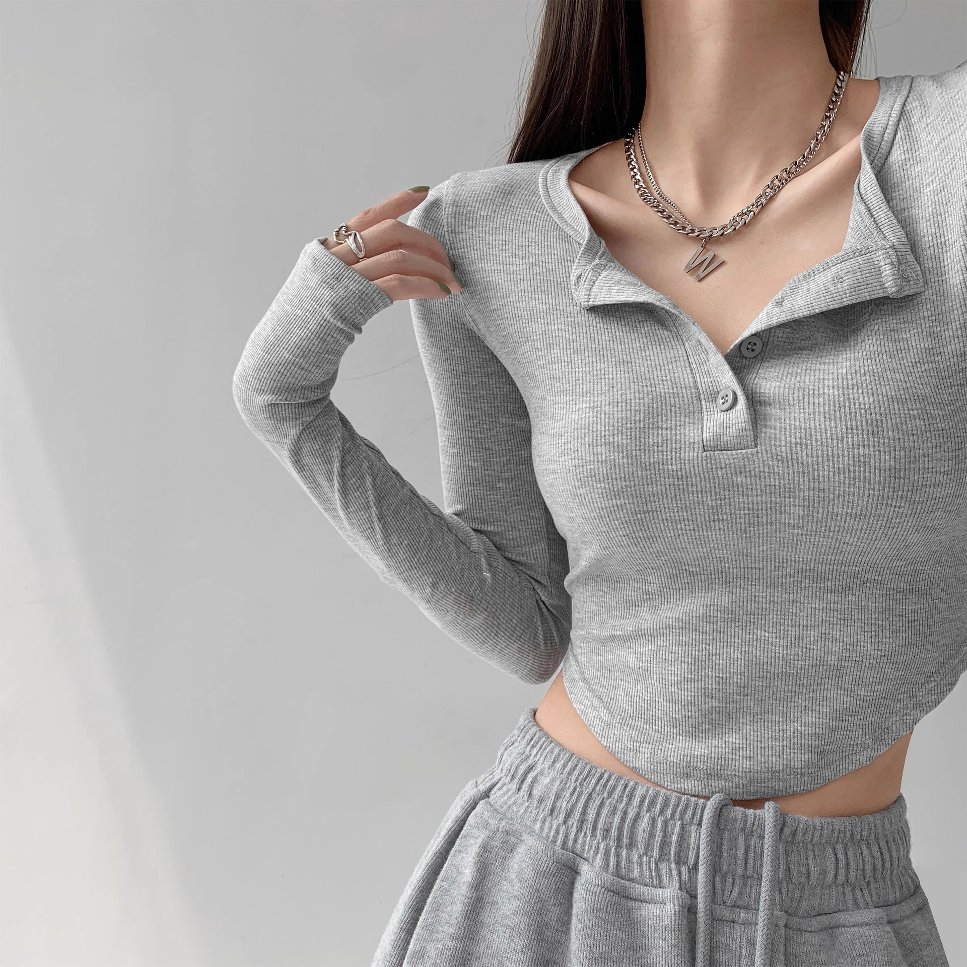 長袖Tシャツ レディース 2025年秋 細見え セクシー風 半開襟 カラー ベースレイヤー シェイプアップ 細身 ホットガール ショート丈トップス