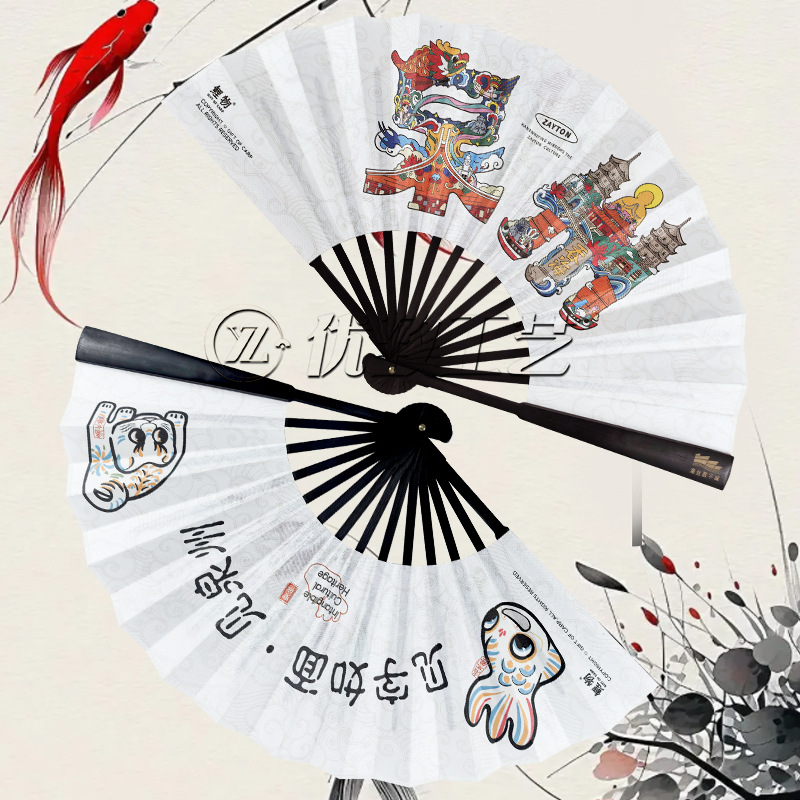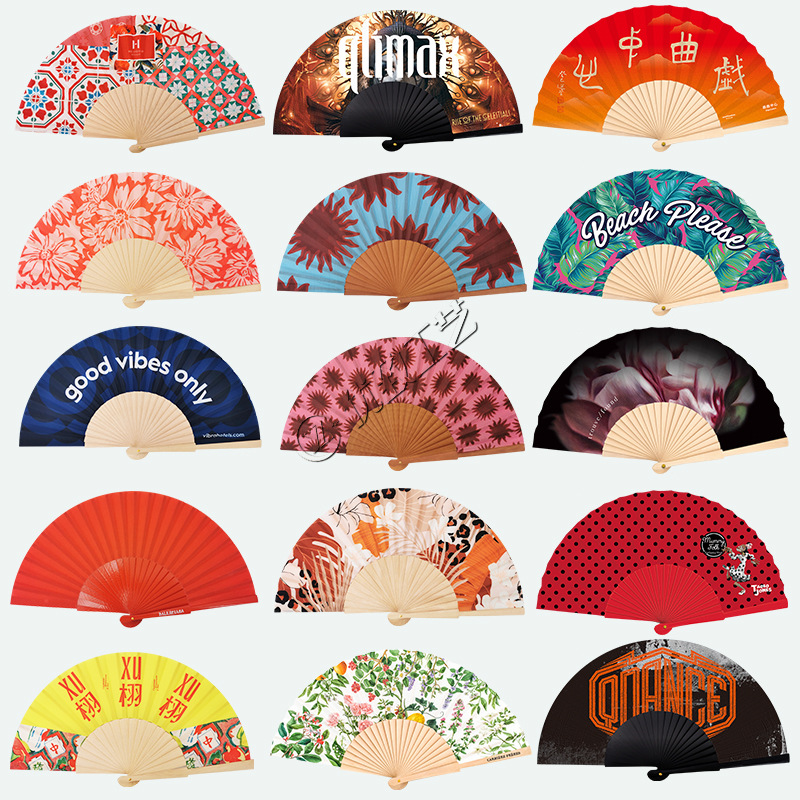 国境を越えたソース工場は、大規模なファンスポットUV工夫ファン竹骨布面折り畳みファン蛍光ファンを提供している