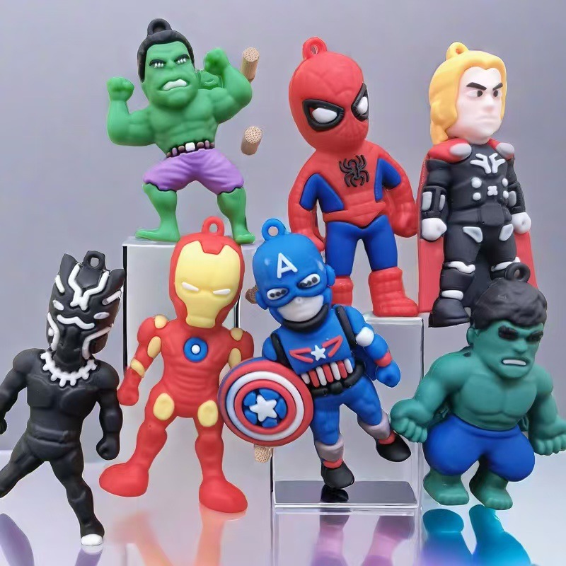 新商品のアベンジャーズシリーズのアニメのキーホルダーはスパイダーマンのアイアンマンのアメリカの隊長の公仔のペンダントを掛けて卸売りします。