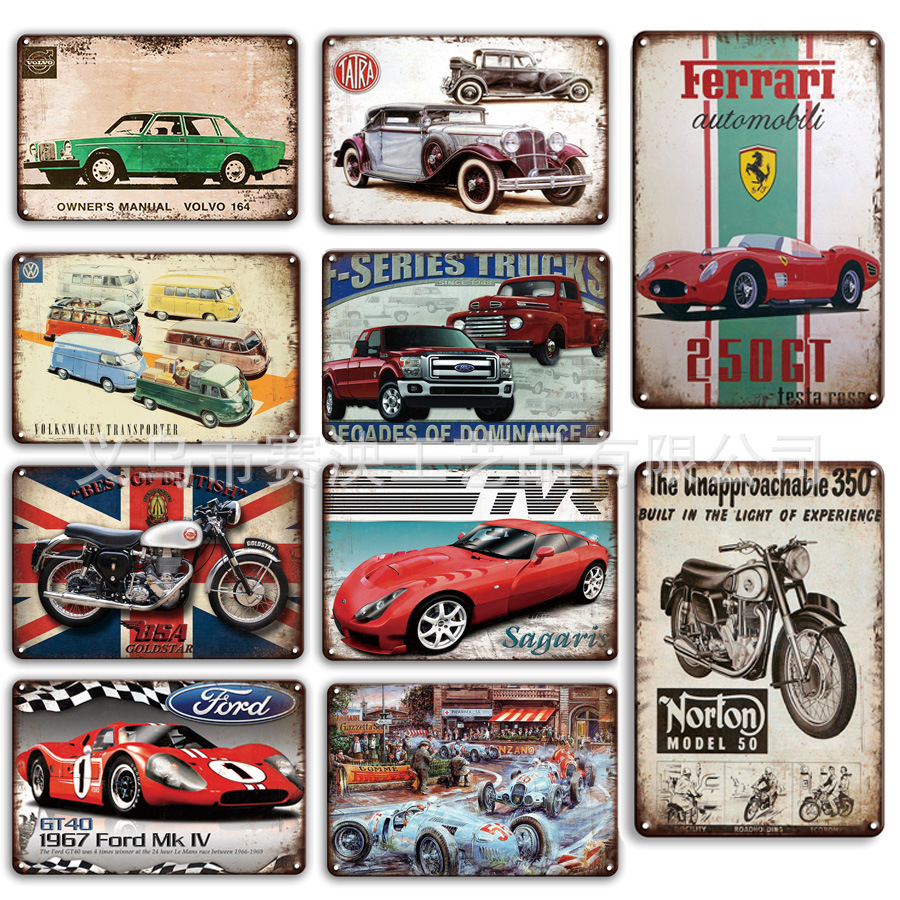 Amazon ヨーロッパとアメリカのレトロな自動車とオートバイのブリキの絵画壁装飾パーソナライズされたバーレストラン壁掛け絵画金属工芸品