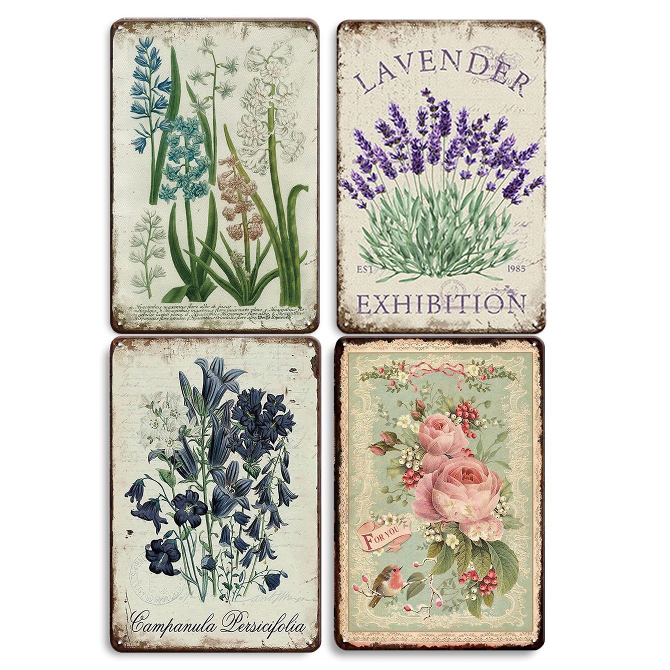 花植物ブリキ絵画レトロノスタルジアクリエイティブアイアンアート壁装飾バー壁家の装飾吊り絵画