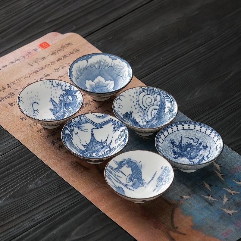 9.9 送料無料 6 個セット青と白の磁器ティーカップと笠カップ釉下色マスターセット家庭用品ティーセット