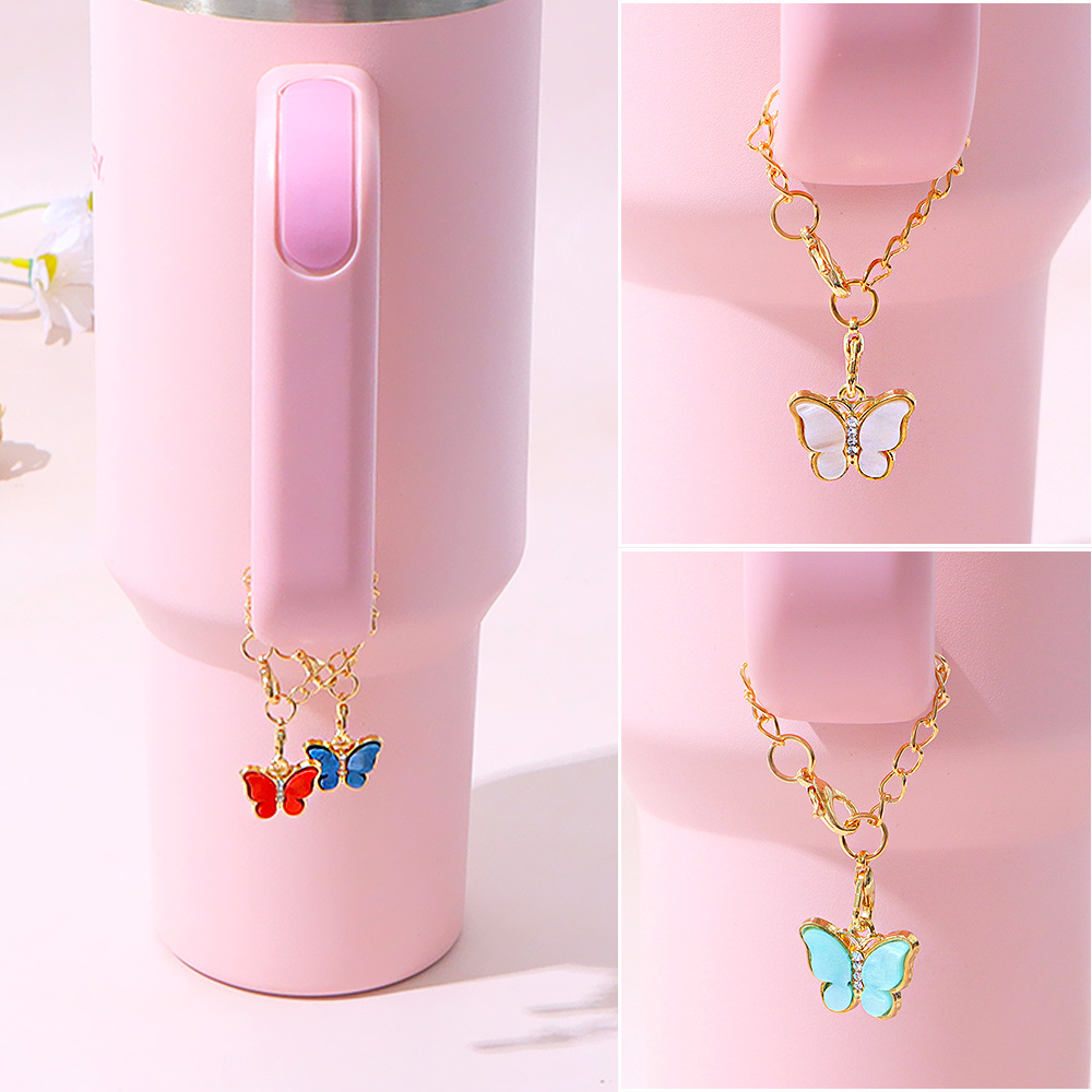かわいいドリル付き蝶チェーンキーホルダーシンプルスタンリー水杯チェーンDIY本包チェーンペンダントクロスボーダー