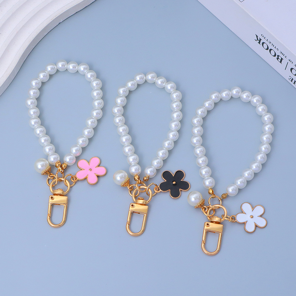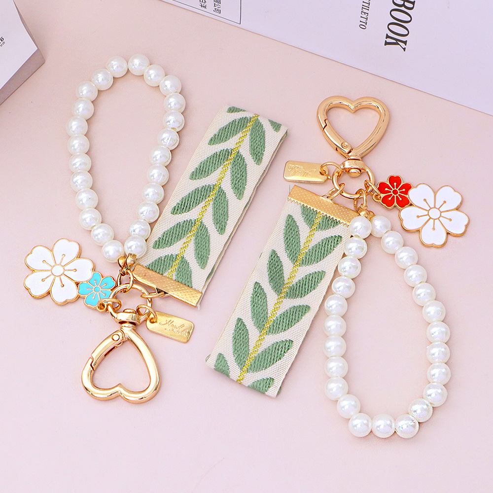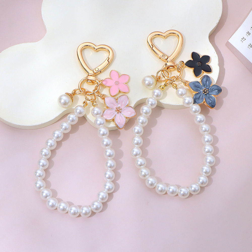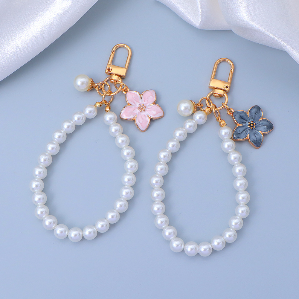 ファッション真珠のチェーンのビーズのキーホルダーの合金の花のペンダントの女子学生の携帯電話のカバンの装飾の越境の人気があります。