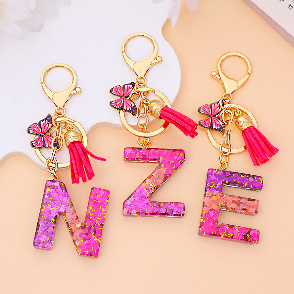 水晶滴ゴム樹脂スパンコールアルファベットキーホルダー女子蝶流蘇バッグストラップクロスボーダー人気プレゼント
