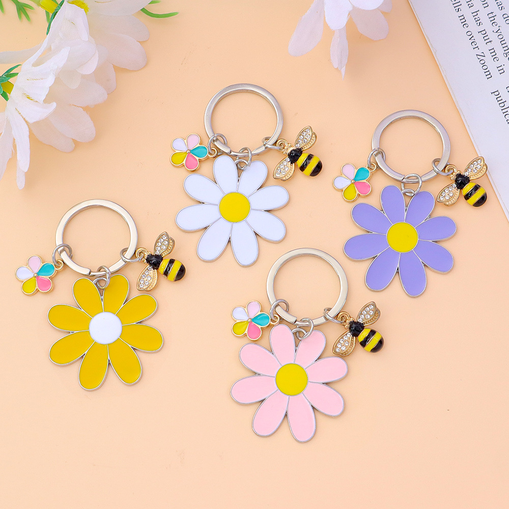 国境を越えて人気のある小清新金属デイジーミツバチの花のキーホルダー女子バッグ装飾ストラップ学生プレゼント