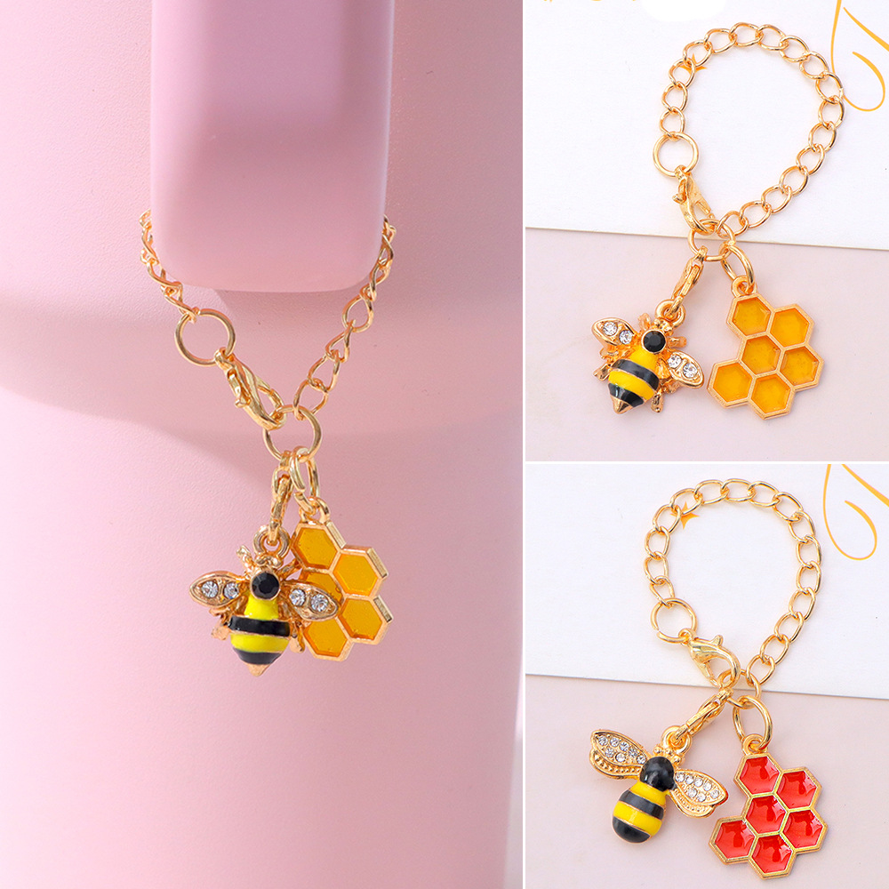 かわいいミツバチのキーホルダー六角形の滴糊ハニカムペンダントのキーホルダーシンプルなスタンリー水カップのチェーン部品