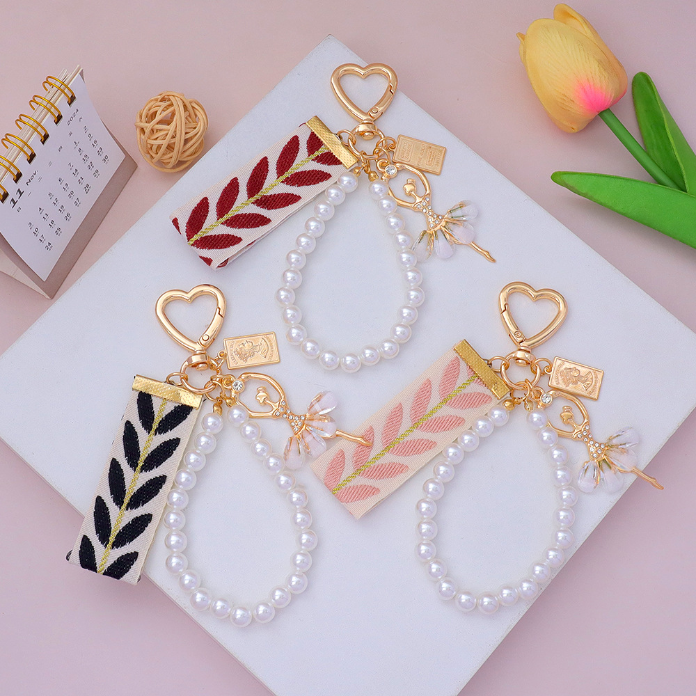 小香風真珠愛山茶花ペンダントキーホルダー少女心ハンドバッグ装飾ストラップ親友プレゼント