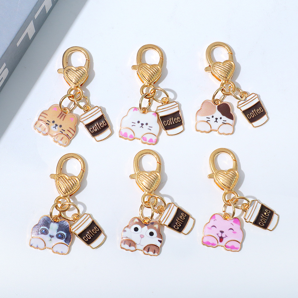 かわいい金属のコーヒー猫のペンダントのキーホルダーの少女の心は紛失を防ぎます。