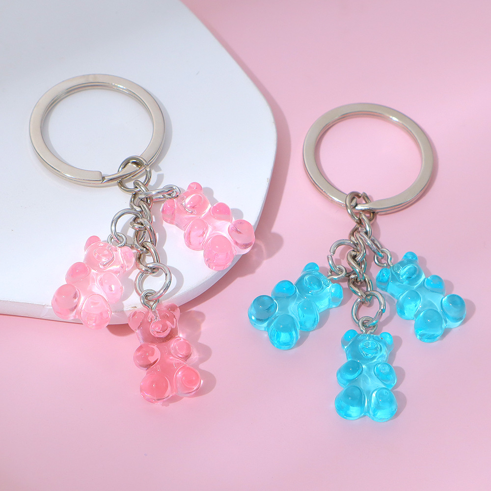 3D ゼリーカラー透明漫画クマ樹脂キーホルダーガールハートハンドバッグバッグペンダント子供のギフト